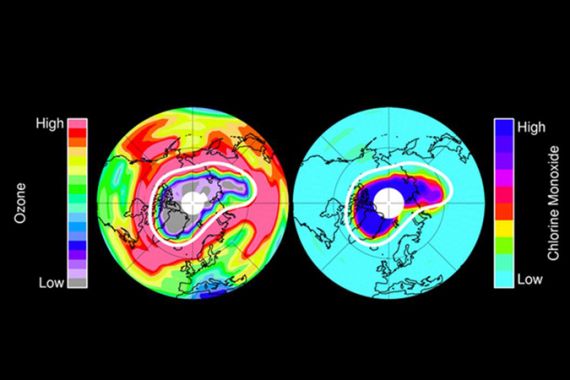| A NASA study finds the amount of ozone destroyed in the Arctic in 2011, shown in this image, was comparable to the ozone ‘hole’ that formed each spring since the mid-1980s [EPA] |