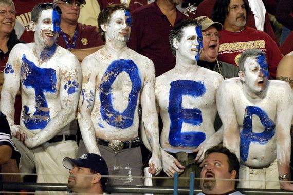 The response to Matko gives lie to the media portrayal of last Saturday’s game. We were told the atmosphere was “somber”, “sad” and “heart-rending”, as “the focus returned to the children”. The crowd was swathed in blue, because, we were told, that is the colour of child abuse awareness (also the Penn State colours). The team linked arms emerging from the tunnel. They dropped to a knee with their Nebraska opponents at midfield before the game. Once again, broadcasters told us, “the players were paying tribute to the victims of child abuse”. We were told all of this, and I wish to God it was true.