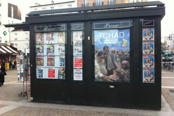 | Chad’s president funded a billboard in Paris at a cost of almost 170,000 euros [Abdelkerim Koundougoumi/Global News Insight] |