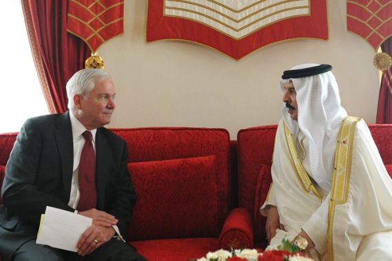 | Robert Gates, the US defence secretary, met with Bahrain”s king Hamad bin Isa Al Khalifa shortly before the GCC military stepped into Bahrain, pointing to possible US complicity and foreknowledge of the Gulf intervention [GETTY] |