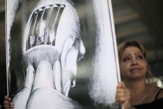 | Lucy Flores, whose husband spent four years in Pelican Bay, at a rally in support of inmates on hunger strike [REUTERS] |