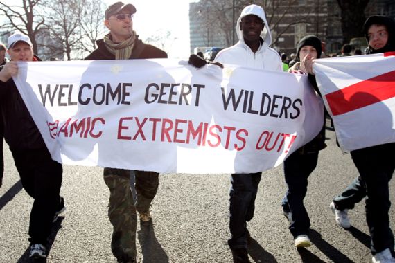 | The right-wing English Defence League has grown in strength and numbers, as conservative think-tanks help whip up a climate of fear in Britain, and across Europe and the US [GALLO/GETTY] |