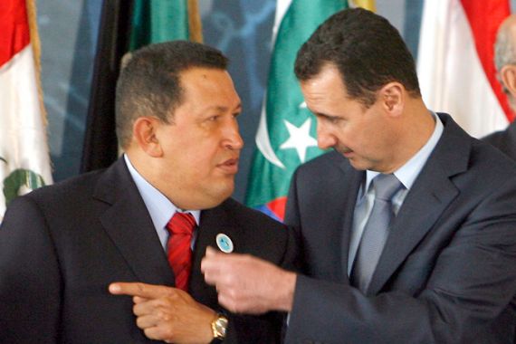 In June 2010 for example, shortly after the Arab Spring had spread to Syria, Chavez welcomed Assad to Caracas and remarked that the Syrian leader was now an honourary member of the Syrian-Venezuelan community. With a handful of sycophantic Syrian-Venezuelans looking on, Chavez added that the people of Arabia and Latin America would work together to construct a new world, and “Syria and Venezuela are at the forefront of that struggle”.