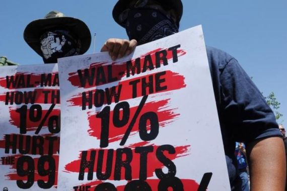 A few weeks ago, Walmart announced that its second-quarter profits rose almost six per cent to just over $4 billion. Ruben makes $8.50 an hour with no benefits. Because he doesn’t have health insurance, he prays that he doesn’t get sick or injured on the job. He says the requirement to unload 250 boxes an hour is an impossible task, but he moves as fast as possible to avoid being fired.