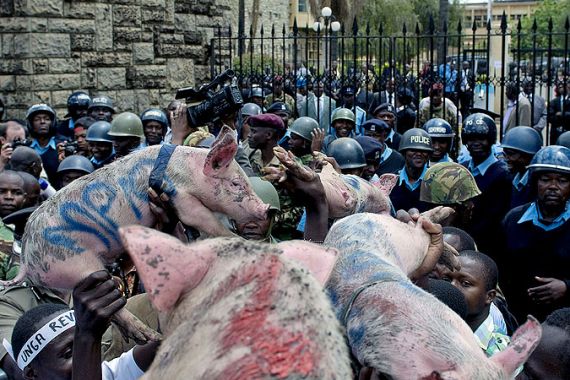 | ‘Greedy pig’ protest held at Kenya parliament |