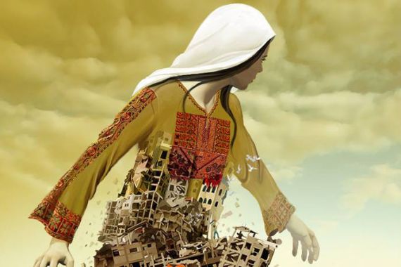 “The woman is at the centre of our culture. They create and nurture the next generation,” she explains. The image she created of a woman rising up from a Gaza village, with a skirt made of destroyed homes, became one of the most shared artworks on Facebook, with many using it as their profile photo.