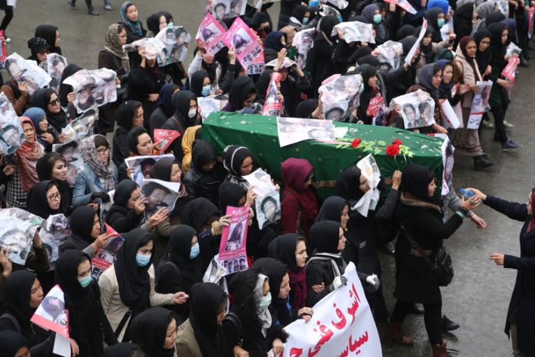 ![Women march in the Afghan capital of Kabul with pictures showing ethnic Hazaras who were allegedly killed by the Taliban [AP]](https://www.aljazeera.com/wp-content/uploads/2015/11/6a40880f650640ff86d9481c42001bdd_18.jpeg?quality=80)