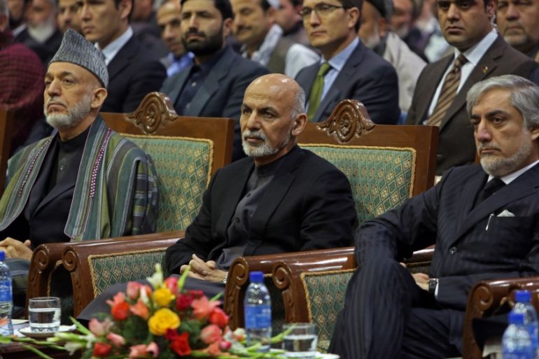 ![Ghani, Karzai and Abdullah during a ceremony marking the first anniversary of the death of Former Afghan Vice President Marshal Mohammed Qasim Fahim [AP]](https://www.aljazeera.com/wp-content/uploads/2015/03/15f454477aff4be4b0d94eef7f6069b3_18.jpeg?resize=770%2C513&quality=80)