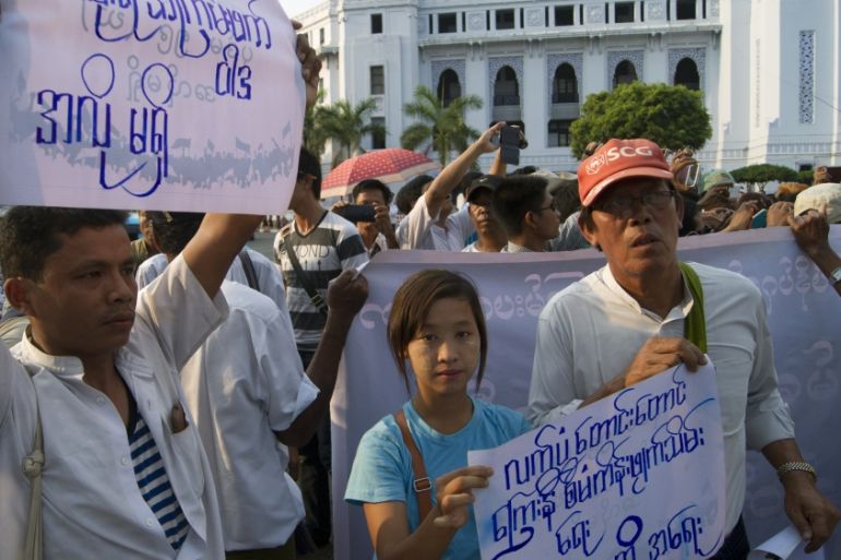 ![Myanmar activists march to commemorate the anniversary of a crackdown on protesters occupying Letpadaung copper mine [AP]](https://www.aljazeera.com/wp-content/uploads/2015/04/7883c6a4a14341feb91271b1a15b47b5_18.jpeg?resize=770%2C513&quality=80)