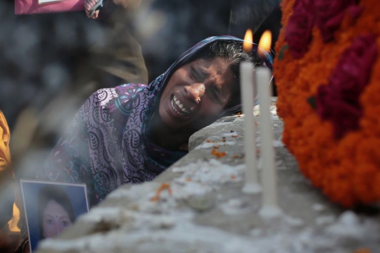 ![Bangladeshi relative of a victim cries in front of a monument erected in memory of the victims of Rana Plaza building collapse [AP]](https://www.aljazeera.com/wp-content/uploads/2015/04/0d47c31d866947e1b01eb582f6bccdf6_18.jpeg?resize=770%2C513&quality=80)