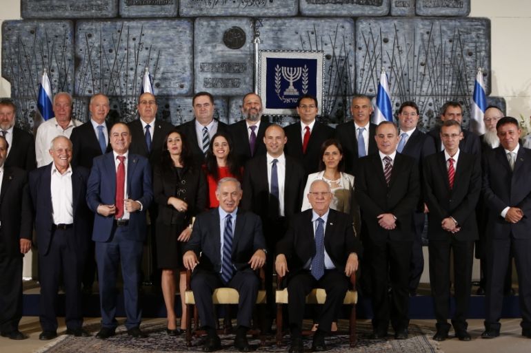 ![Members of the newly sworn in 34th government of Israel pose for a group photo at the presidential compound in Jerusalem on May 19, 2015 [Getty]](https://www.aljazeera.com/wp-content/uploads/2015/05/3b2f47d542da4d99a3d20777b83e4da0_18.jpeg?resize=770%2C513&quality=80)