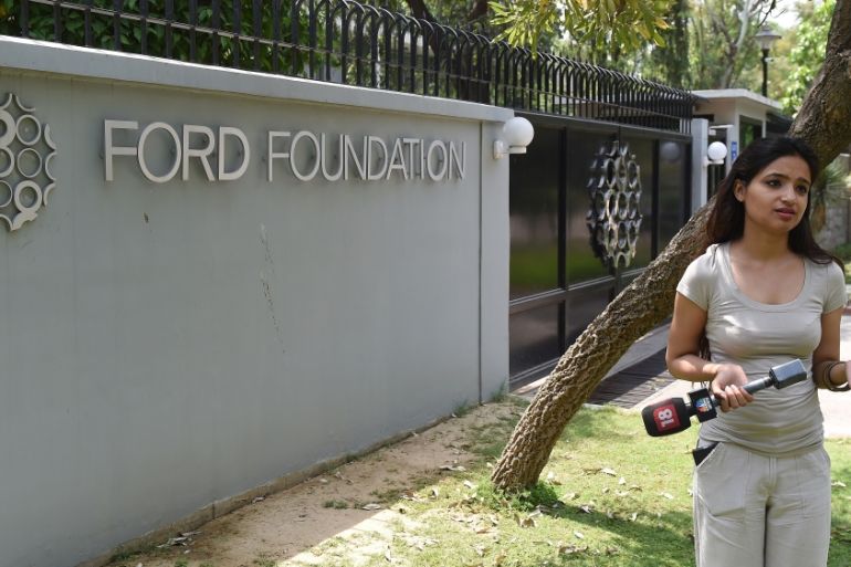 ![An Indian television journalist reports outside the office of the Ford Foundation in New Delhi [AFP]](https://www.aljazeera.com/wp-content/uploads/2015/05/654a49499a1146109a7506d76fb355f7_18.jpeg?resize=770%2C513&quality=80)