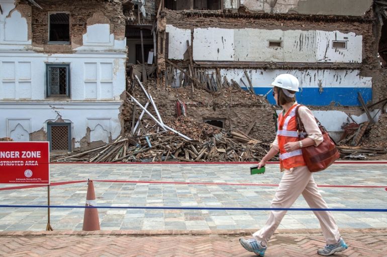 ![A delegate walks in front of a damaged palace during their visit to Basantapur Durbar Square ahead of International Donors'' Conference [Getty]](https://www.aljazeera.com/wp-content/uploads/2015/06/94136a948d094bf783f296e81e0797c7_18.jpeg?resize=770%2C513&quality=80)