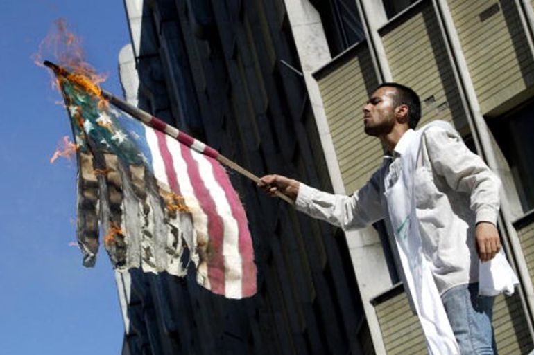 ![An Iranian hardliner wearing a death shroud burns a US flag outside the British embassy in Tehran in 2004 [Getty]](https://www.aljazeera.com/wp-content/uploads/2015/06/102e93b446fa4430aed691cd74429f05_18.jpeg?resize=770%2C513&quality=80)