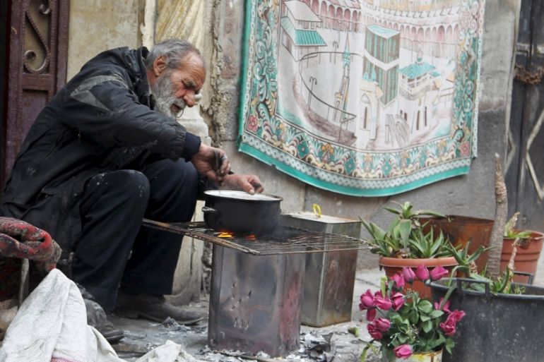 There is no proper food in Aleppo’s eastern neighbourhoods because no vegetables or meat are produced inside the city. We used to receive our food supplies through the road linking Aleppo to the countryside, but it was blocked off three months ago.