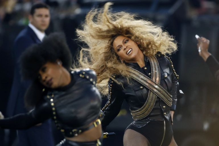 ![Beyonce performs during halftime of the NFL Super Bowl 50 football game in Santa Clara, California [AP]](https://www.aljazeera.com/wp-content/uploads/2016/02/934d3d0c0bd7480da6b3409eed60efad_18.jpeg?resize=770%2C513&quality=80)