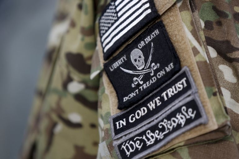 ![Patches on the sleeve of a militiaman is seen at the Malheur National Wildlife Refuge near Burns, Oregon [REUTERS]](https://www.aljazeera.com/wp-content/uploads/2016/01/48d8248388a94c078b797f0e2816da57_18.jpeg?resize=770%2C513&quality=80)