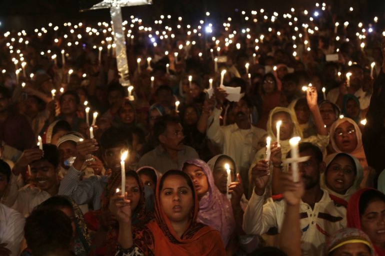 ![Pakistani Christians hold candles during a vigil for victims of a deadly suicide bombing in Lahore, Pakistan [AP]](https://www.aljazeera.com/wp-content/uploads/2016/03/a7bb42ca10494f119b3bb867fbf6f23d_18.jpeg?resize=770%2C513&quality=80)