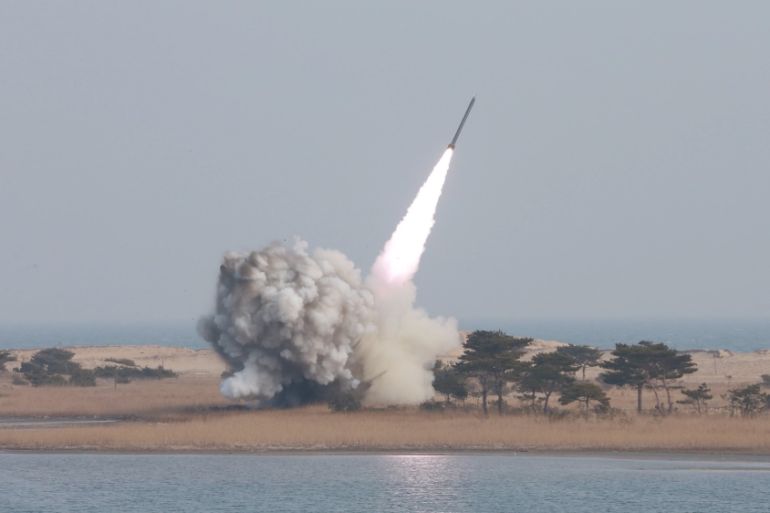 ![A new multiple launch rocket system is test fired in this undated photo released by North Korea''s Korean Central News Agency in Pyongyang [REUTERS]](https://www.aljazeera.com/wp-content/uploads/2016/03/ef921046e1f640bdb6993beb9ff0728a_18.jpeg?resize=770%2C513&quality=80)
