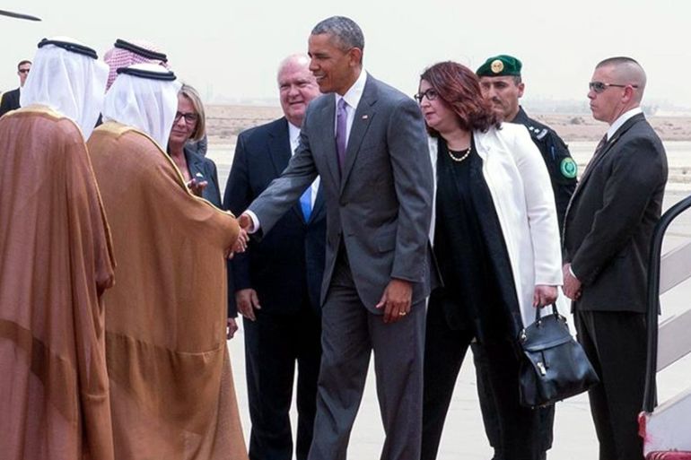 ![US President Barack Obama being received by Prince Faisal bin Bandar bin Abdelaziz al-Saud, Governor of Riyadh, upon arrival at King Khalid International Airport, Riyadh, Saudi Arabia [EPA]](https://www.aljazeera.com/wp-content/uploads/2016/04/ce5c1eb75a484356a65a533fe9e57043_18.jpeg?resize=770%2C513&quality=80)