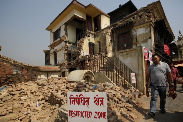 ![A man walks past the collapsed monastery at the Swoyambhunath Stupa, a UNESCO world heritage site a year after the 2015 earthquakes in Kathmandu, Nepal [REUTERS]](https://www.aljazeera.com/wp-content/uploads/2016/04/62ebeb99beba46e0baab5052e64dab34_18.jpeg?resize=770%2C513&quality=80)