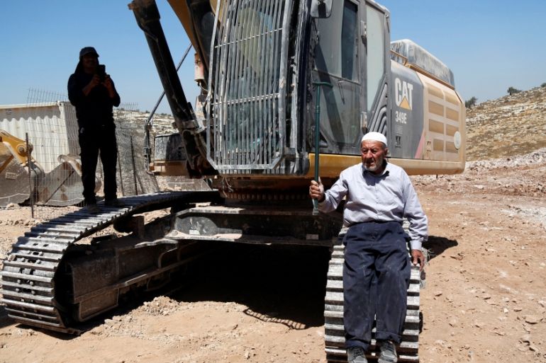 ![A Palestinian man sits on a tracks of an Israeli excavator as he tries to prevent it from clearing his land during a protest against Jewish settlements, near the West Bank city of Ramallah [REUTERS]](https://www.aljazeera.com/wp-content/uploads/2016/07/0deae2465067483ab8f4c3d5fbec74a1_18.jpeg?resize=770%2C513&quality=80)