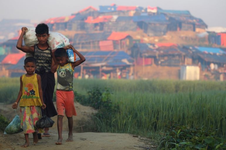 Most have taken refuge in the makeshift settlements less than an hours walk from the Naf River, which divides the two countries here. They can still see the hills of Myanmar on the other side.