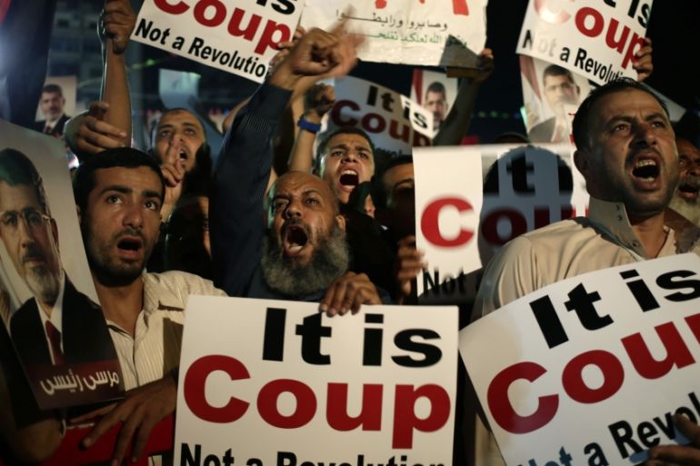 In July of the previous year, el-Sisi seized power from elected President Mohamed Morsi, a member of the Muslim Brotherhood. His actions had nothing to do with a military takeover, el-Sisi claimed. Scores of secular Egyptian commentators confirmed his version, and a green laser beam echoed them from the facade of a government building overlooking a crowded Tahrir Square: “it is not a Coup”.
