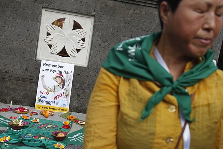 Social movements across the world resisted. La Via Campesina, the largest peasant movement worldwide, also featured at the forefront of this resistance. In 2003, in Cancun, Mexico, outside the venue of the Fifth WTO Ministerial Conference, one of our dear comrades, Korean farmer Lee Kyung Hae, took his life in protest. He was holding a banner that read “WTO Kills Farmers”. In every ministerial thereafter, we ensured that his sacrifice would not be forgotten as we pledged to fight “WTO Out of Agriculture”. In many ways, this resistance exposed the ills and dented the influence of WTO and several of its ministerial rounds have floundered since then.