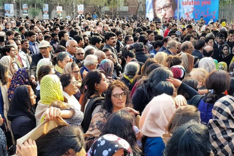At her funeral there were lawyers, young and old, breaking down in sorrow. There was a burqa-clad acid attack survivor sobbing in a corner, an old woman with tears spilling down her cheeks asking aloud: “who will help us now?” An activist, grieving: “our mother is gone”. Father of peace activist Raza Khan, who was forcibly disappeared on December 2 last year, was also there. He looked lost when Asma’s body was taken for burial because she was Khan’s legal counsel. Christian groups were also at the funeral, carrying wreaths of roses because Asma was their defender.