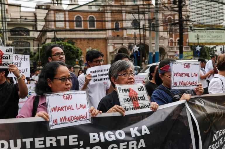 Duterte declared martial law in Mindanao in May 2017 after hundreds of fighters from the Maute and Abu Sayyaf armed groups laid siege to the southern city of Marawi.