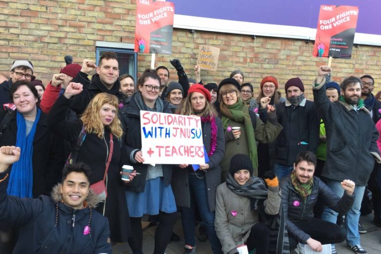 On Friday, December 1, two protest marches met in central London in what felt like a magical moment. A few thousand striking university lecturers had just reached the British Parliament at Westminster after marching from the Bloomsbury neighbourhood, when close to a thousand Extinction Rebellion teenagers came pouring down a parallel street and the two protests united.
