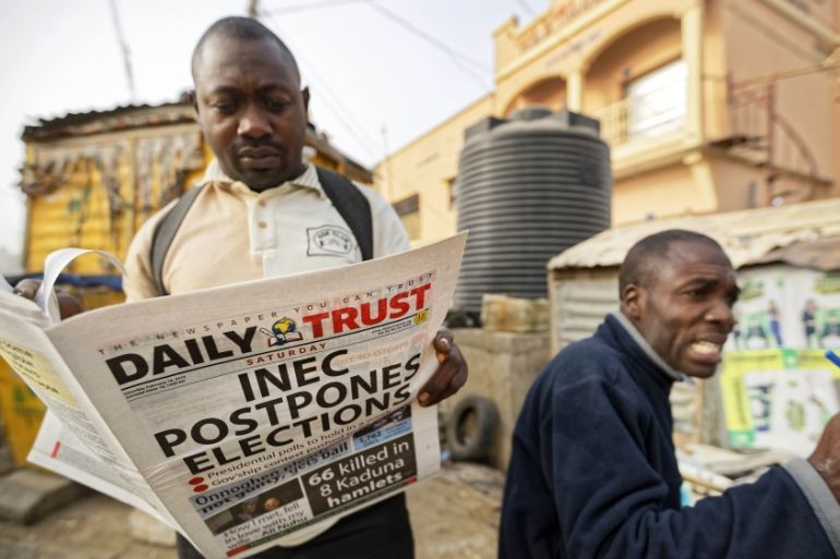 So roughly five hours to the scheduled commencement of voting on Saturday morning, INEC Chairman Mahmood Yakubu announced that the vote would have to be postponed by a week, because of sabotage, bad weather and other logistical challenges. But the reasons for the aborted start of the election run much deeper than that.