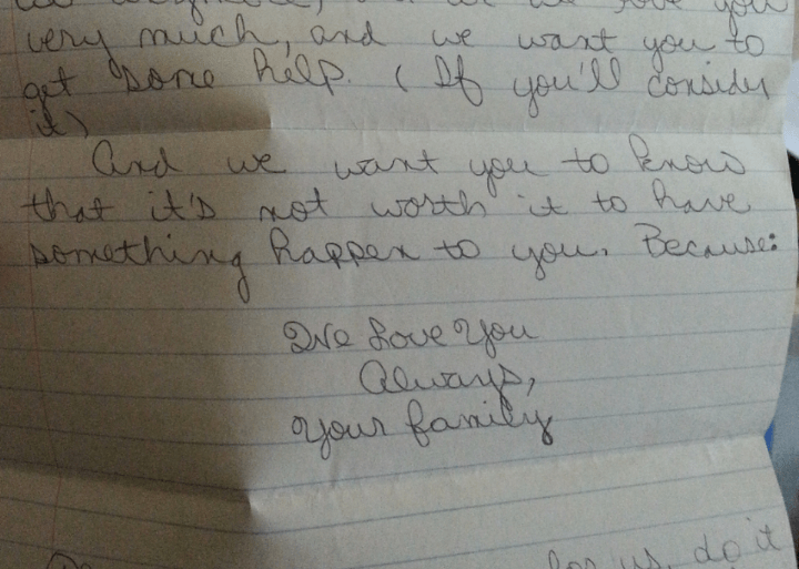 We all know that you have some sort of a problem, we know that we can’t tell you what to do anymore, but we all love you very much, and we want you to get some help.