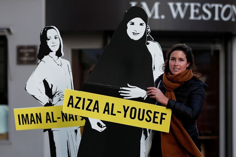 The crackdown on female activists by the Saudi government reached its peak when the authorities arrested and detained al-Hathloul, Eman al-Nafjan and Aziza al-Yousef on May 15, 2018. Al-Nafjan and al-Yousef were temporarily released in March 2019 on the condition that they attend future court hearings.