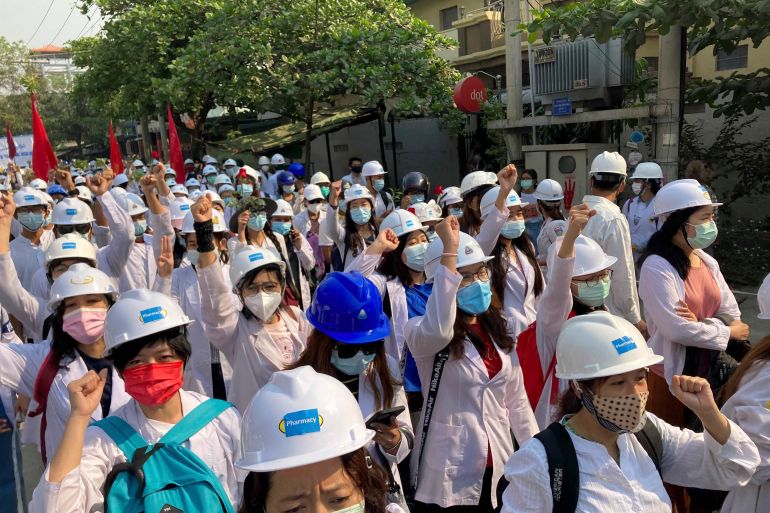 Women activists and politicians have also helped mobilise crowds to join the protests. Ei Thinzar Maung, one of the country’s youngest candidates for MP in the last election, nominated by the Democratic Party for a New Society, has been using her social media accounts where she has more than 360,000 followers to rally support for the demonstrations.