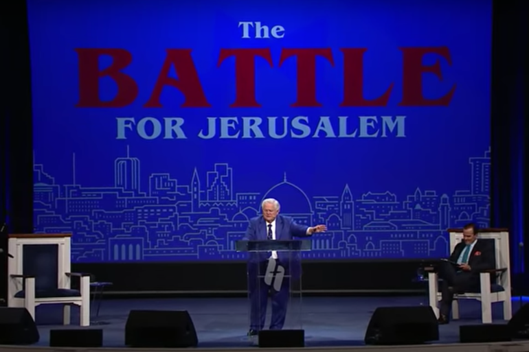 Though Hagee had originally planned to speak on marriage and commitment on Sunday, May 16, he shifted to a sermon titled “The Battle for Jerusalem” given recent events in Palestine: attempted expulsions of Palestinians from their homes in the East Jerusalem neighbourhood of Sheikh Jarrah to make way for Israeli settlers; raids by Israeli security forces of Al-Aqsa Mosque; and Israel’s assault on the Gaza Strip, which killed at least 248 Palestinians, including 66 children. Israel has reported 12 dead, including two children, from Hamas rocket fire.