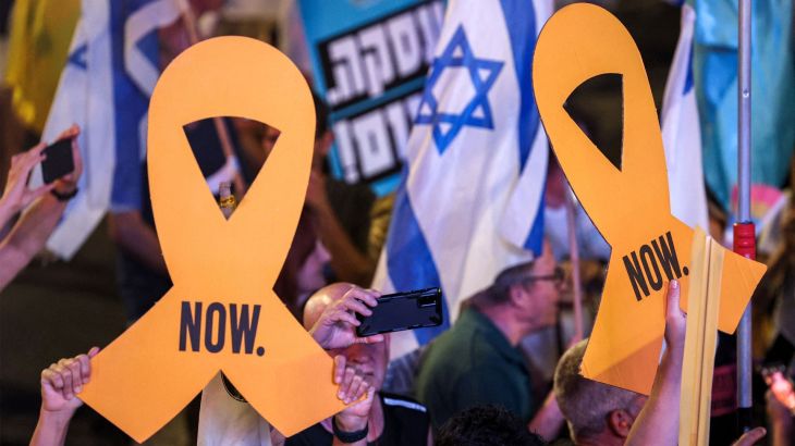 Demonstrators demand a ceasefire deal as more captives are killed in Gaza.