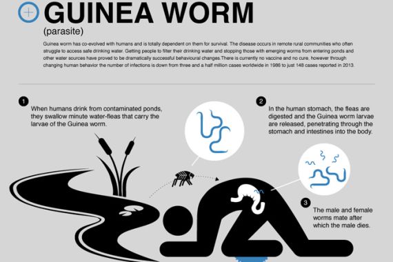 Guinea worm has co-evolved with humans and is completely dependent on them for survival.