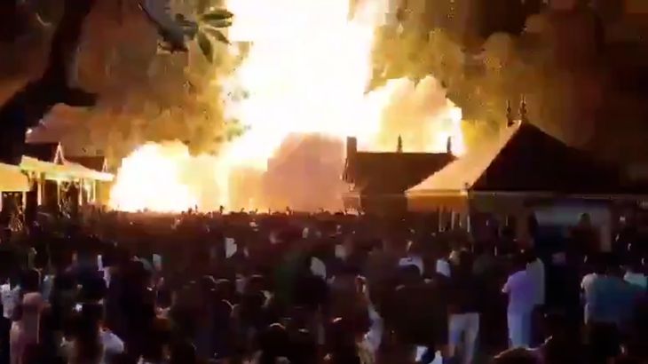 Huge explosions were seen in two incidents involving stores of fireworks being set on fire in India. In Kerala dozens of people were injured by blasts during a festival, while in Hyderabad one woman was reported injured after a fire at a crowded shop.
