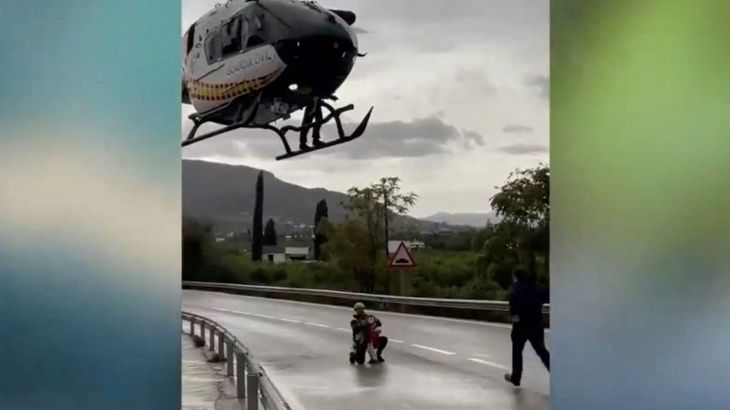 Watch the moment a child is rescued by a helicopter crew after torrential rains caused flash floods that have killed several people in south-eastern Spain.