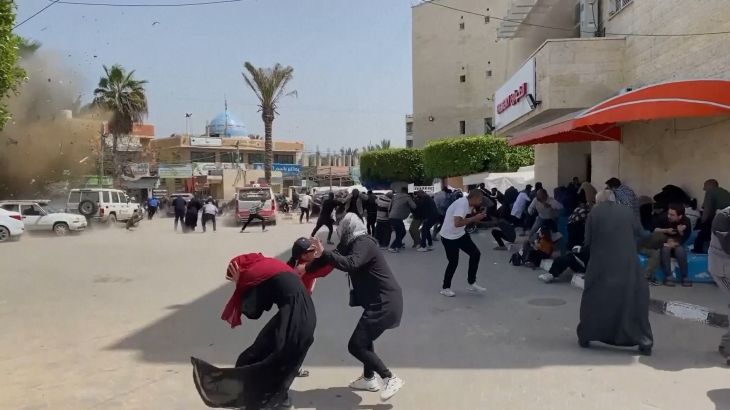 Video captures the moment Israeli forces bomb a tent where displaced Palestinians and journalists were sheltering inside the Al-Aqsa Martyrs Hospital compound in Deir el-Balah, central Gaza Strip.