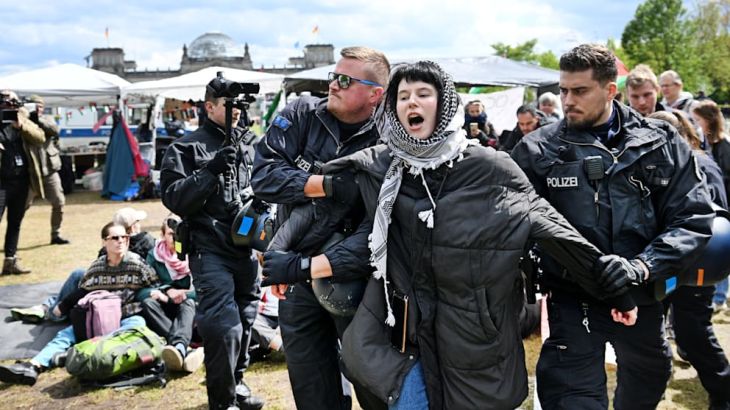 German police were accused of using excessive force as they broke up a pro-Palestinian protest camp outside the Bundestag parliament building in Berlin, where several demonstrators were reportedly arrested.