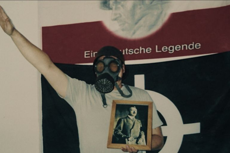 Manuel is living in hiding with his young daughter. He became involved with neo-Nazism when he was 13 and eventually led a German paramilitary neo-Nazi group. He describes acts of brutality he says have left him unable to look people in the eye, including the time he kicked a heavily pregnant woman in the stomach.