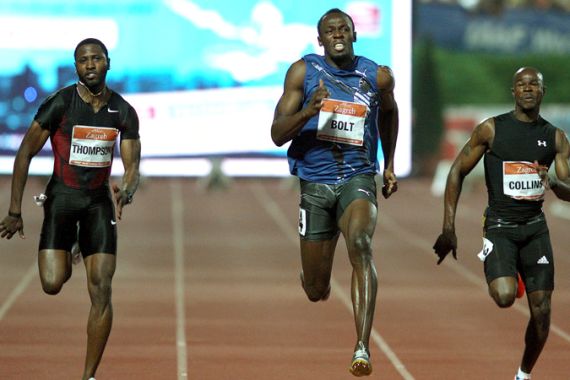 Kim Collins of Saint Kitts and Nevis ran a season best 10.01 seconds to finish second, ahead of Trinidad’s Richard Thompson who clocked 10.03.