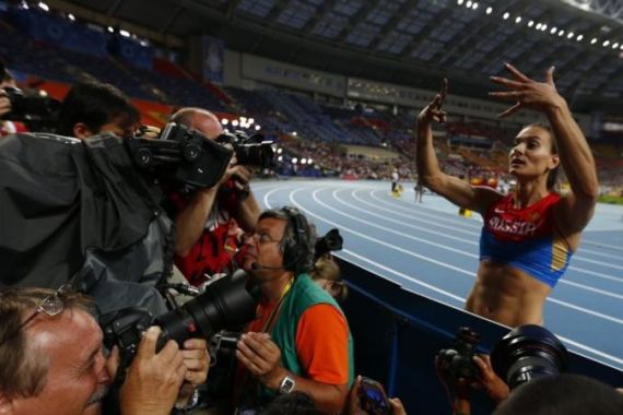 Yelena Isinbayeva, the greatest woman pole vaulter of all time, thrilled a partisan home crowd roaring her every jump when she landed the third and probably last world title of her illustrious career on Tuesday.