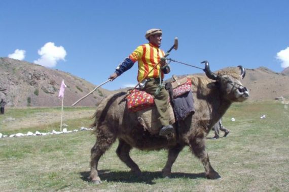 It is an unusual sight to watch players trying to manoeuvre the heavy yaks.