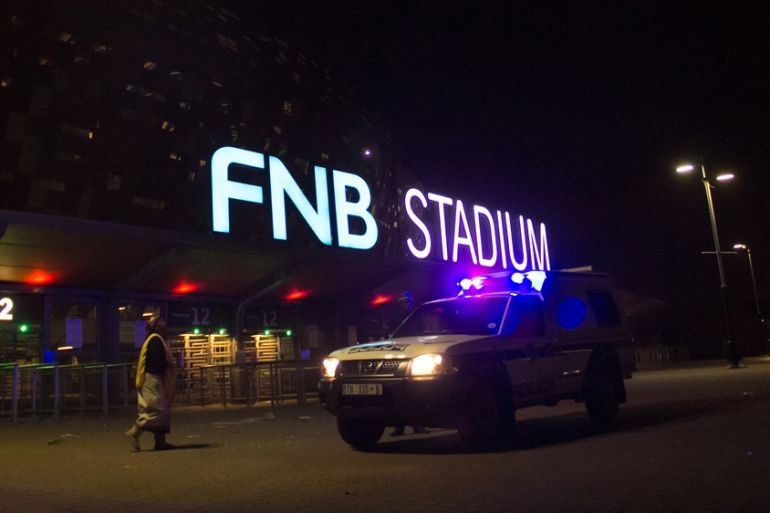 Public and private broadcasters cited officials saying the crush happened outside a gate at the FNB stadium which hosted the final of the World Cup seven years ago, which was won by Spain.
