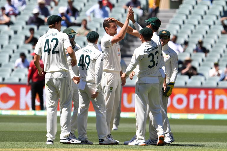 Australia chased down the victory target of 90 for the loss of Matthew Wade (33) and Marnus Labuschagne (six) to take a 1-0 lead in the series with Tests to come in Melbourne, Sydney and Brisbane.