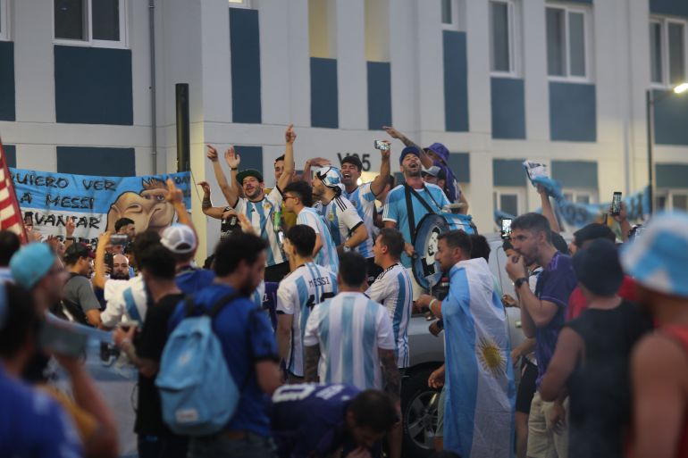 “We have brought our towns, villages and football clubs with us to show that all of Argentina is behind the team,” Mauricio, a fan who travelled from Argentina’s southernmost city of Ushuaia, said while holding up his island’s flag.